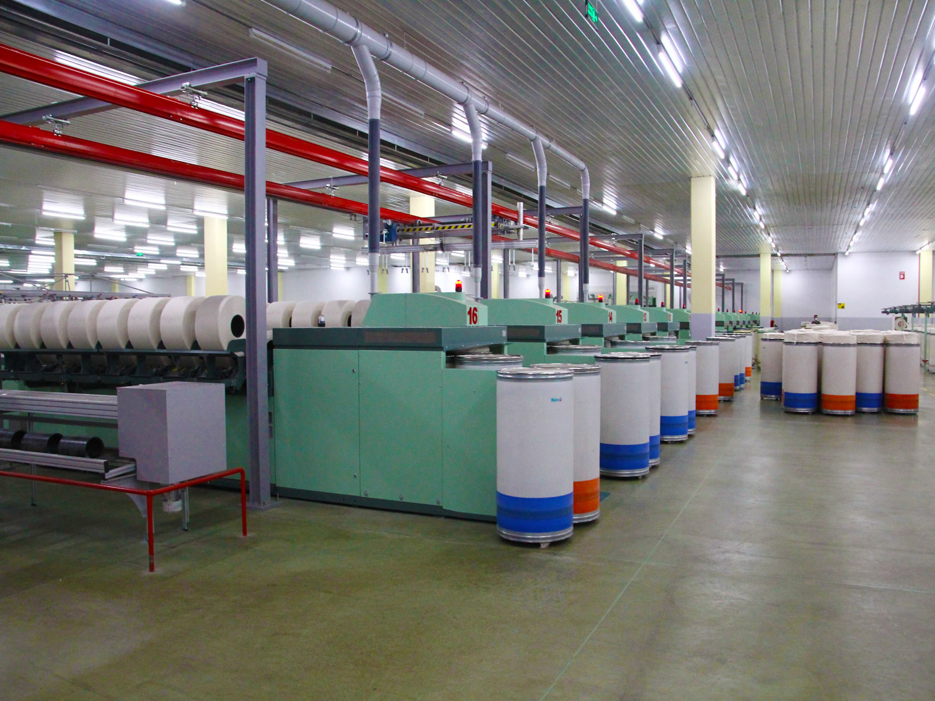 Toplam 2.200 rotorluk Open end iplik kapasitemizle 15 ton/gün Open End ipliği ve 35.560 iğ kapasitemiz ile günlük 25 ton/gün Kompakt Ring İpliği üretimi yapılmaktadır.